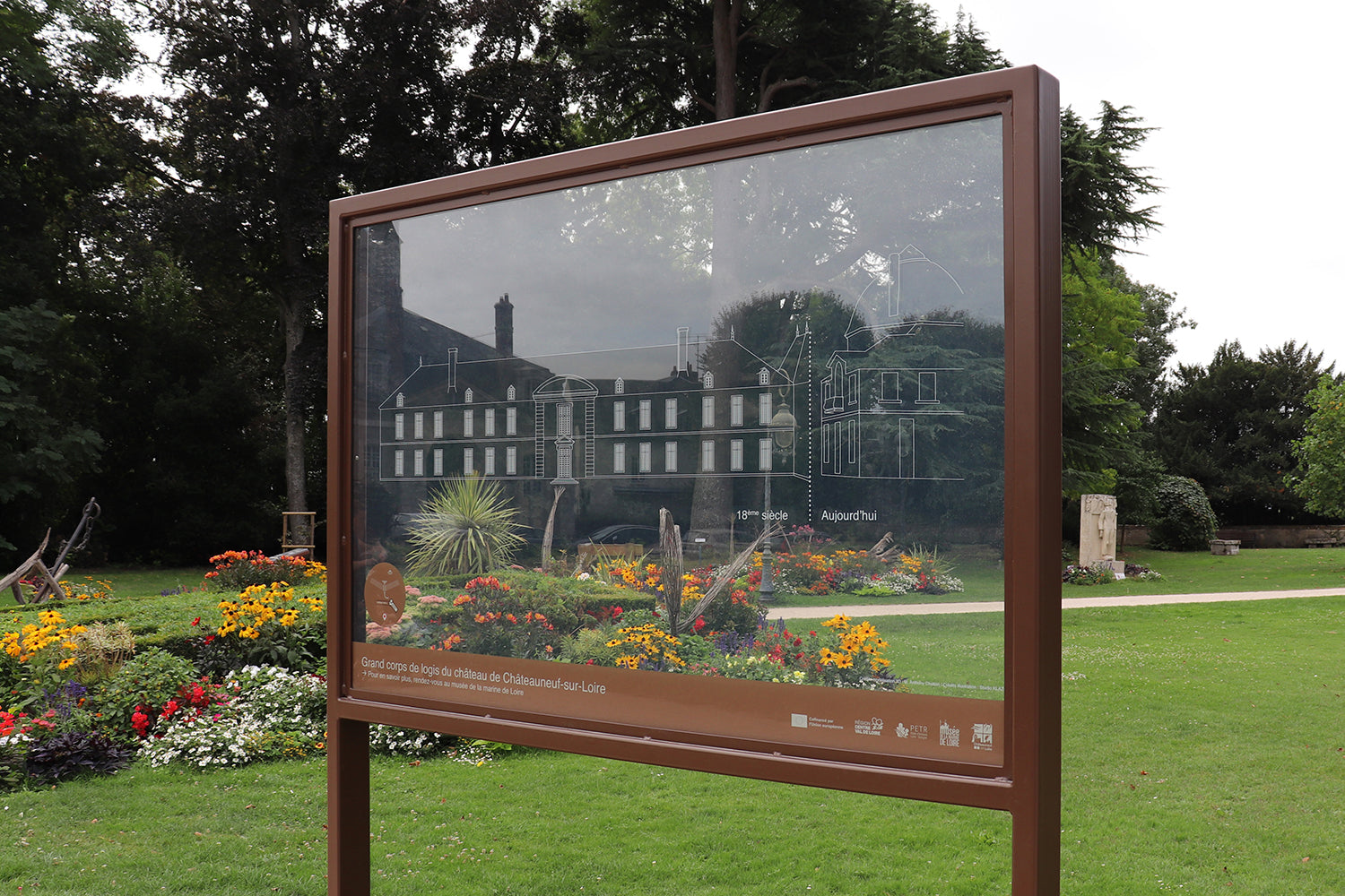 La commune de Chateauneuf-sur-Loire a fait appel à notre studio pour concevoir des supports de médiation à ciel ouvert racontant l’histoire de son patrimoine, un château seigneurial édifié au XVIIe siècle.